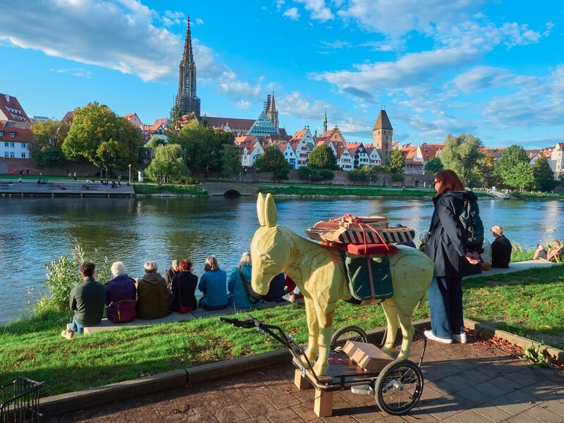 Ivo Weber hat das Publikum an das Donauufer geführt und zitiert aus einem Gedicht, das die Verheißungen des Ungarlandes preist. Im Übrigen unterstützt damals Kaiserin Maria Theresia und noch mehr ihr Sohn Josef II. diese Migration innerhalb des Vielvölkerstaats: die Ulmer Umgebung gehört damals zu Vorderösterreich. Für jemand wie Philipp S. liegt es nahe, die wenig Aussichten bietende Heimat zu verlassen. Das nahegelegene Ulm verspricht zunächst bessere Möglichkeiten. Dort kann er nicht nur in einer Bäckerei helfen und lernen, wie man Seelen backt. Beim Ausliefern der Backwaren sieht er auch, wie viele Menschen aus Schwaben sich donauabwärts einschiffen, nach Ungarn und auf der Suche nach einem besseren Leben dort. Am Ende macht sich auch Philipp S. auf den Weg ins Ungarische. Als sein einziges Kapital kann er seinen Esel mitnehmen.