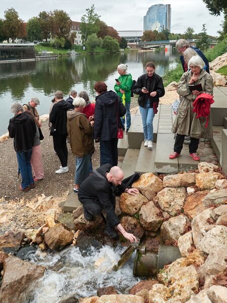 Ein erst vor kurzem sichtbar gemachter Wassereinlass in die Donau war der Künstlerin besonders aufgefallen. Sie hat die lapidare Situation als "Donau-Brunnen der Erinnerungen" bezeichnet. Weitreichende Möglichkeiten ergeben sich so: der Blick auf Vergangenheit, Zukunft und das, was man sich dafür wohl wünschen kann. Auch hier hat sie einen QR-Code mit einem Liebesschloss angebracht.