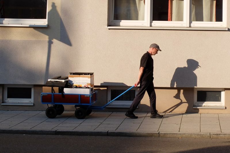 Mit einem Leiterwagen ausgestattet wie bei einem Wanderausflug samt Proviant geht es los. Aber der Künstler hat um eine Abweichung vom üblichen Streifzug gebeten: während des Wegs soll geschwiegen werden.